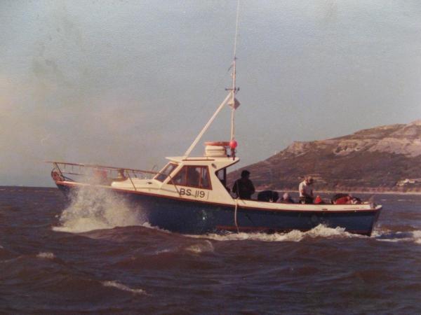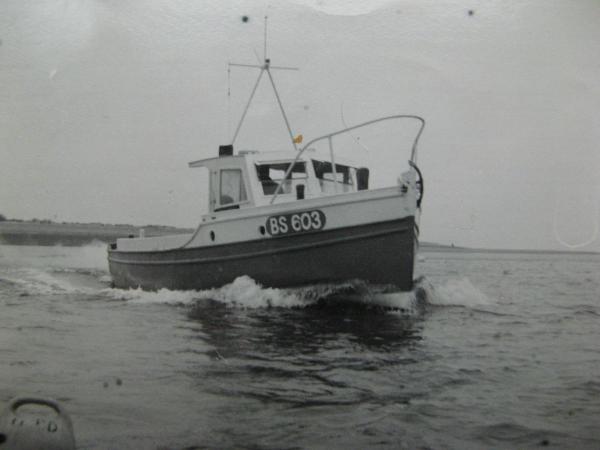 He decided to buy a boat and start an angling business. The 'Skylark' was engaged in passenger trips in Llandudno Bay at the time and was for sale. She would need a new engine and a wheelhouse. Meurig bought her and fitted a marinised ford van engine into her. My Taid (grandfather) was a handy carpenter so he built the wheelhouse. Meurig started to work the Skylark from Deganwy beach a place with no jetty or pontoon to land and embark the anglers but it was close to his home. Skylark was shallow draughted in the bow so the anglers could embark along a plank. Yes they had to walk the plank before they even started their day! The bookings developed and before long he left Hotpoint and started angling trips full time.